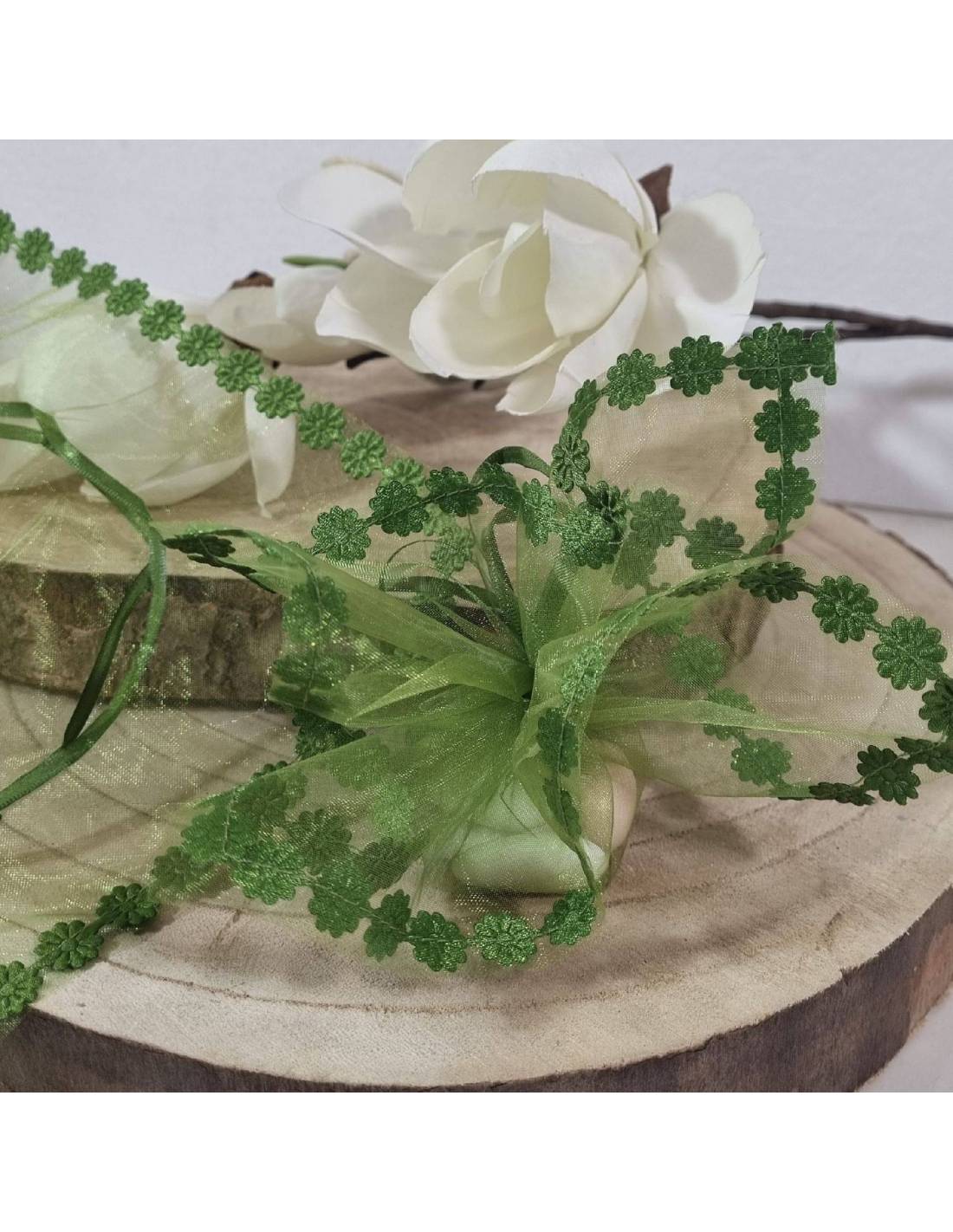 Sacchetti portaconfetti verdi in organza con orlo e tiranti in raso