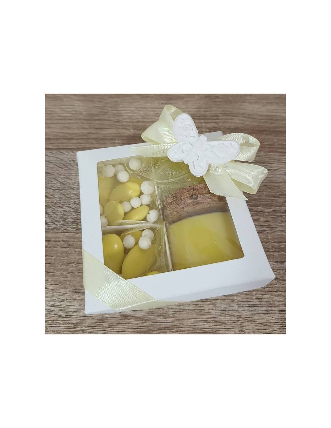 Novità dell'anno candele bomboniere cera yankee candle per ogni evento complete di confetti e zuccherini, gessetti farfalla