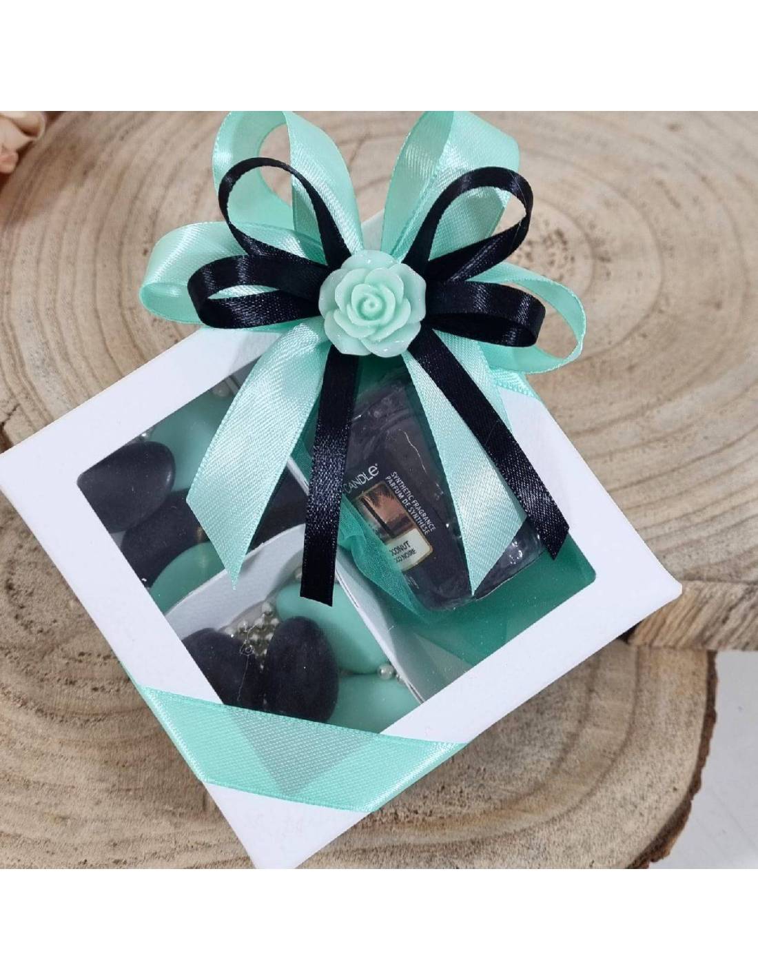 Come puoi ben vedere dalla foto le bomboniere Yankee Candle candele profumate sono nelle tonalità del nero e tiffany.