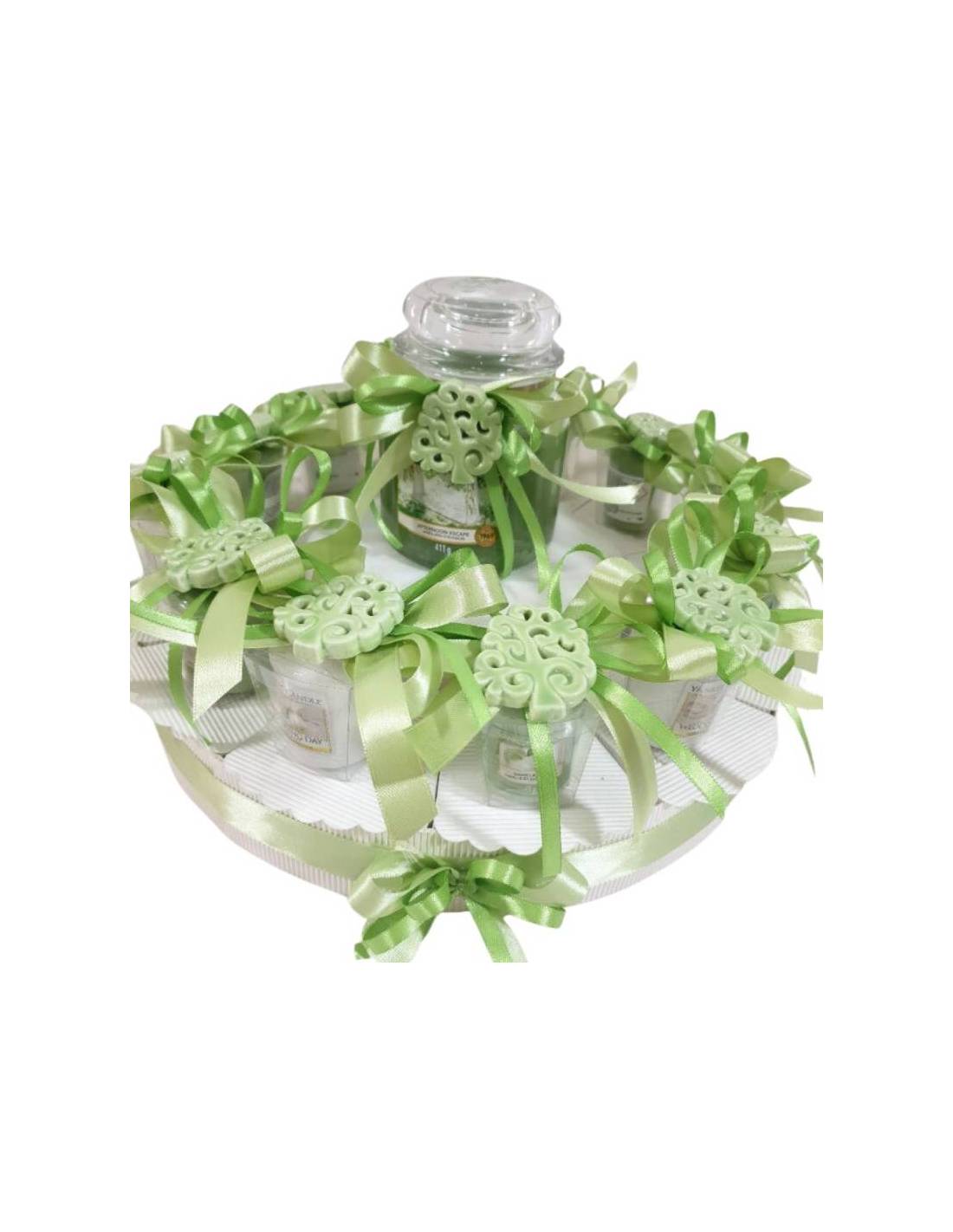 La torta bomboniera candela profumata comprende anche la candela centrale decorata come in foto.