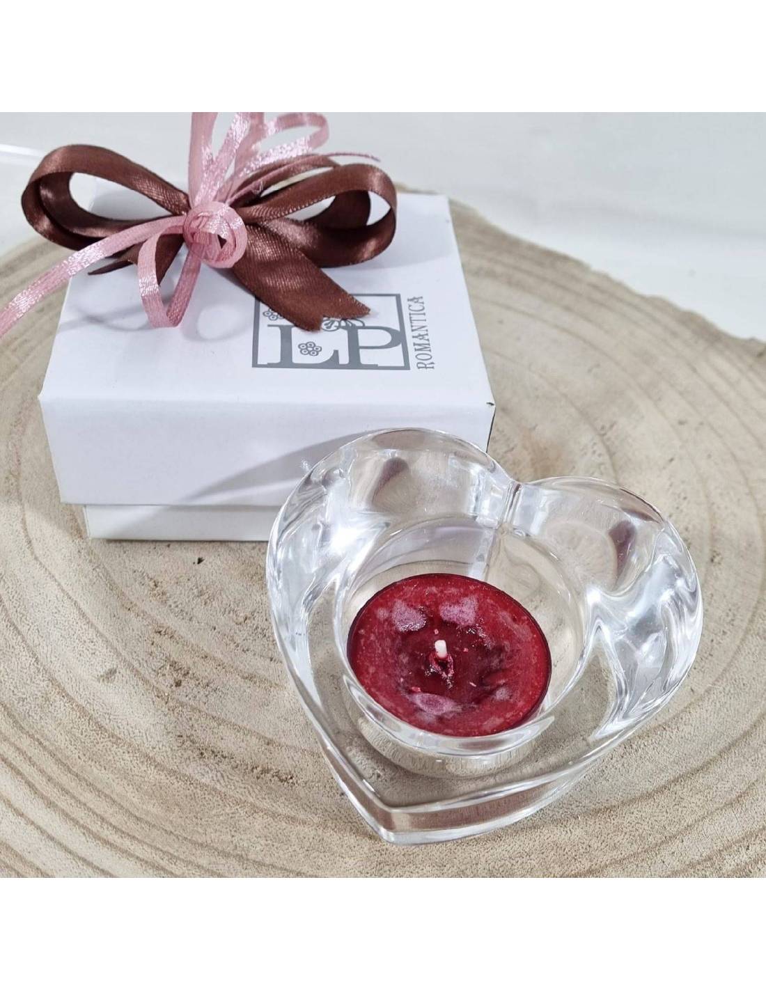 Portacandela in vetro a forma di cuore con candelina profumata e scatola