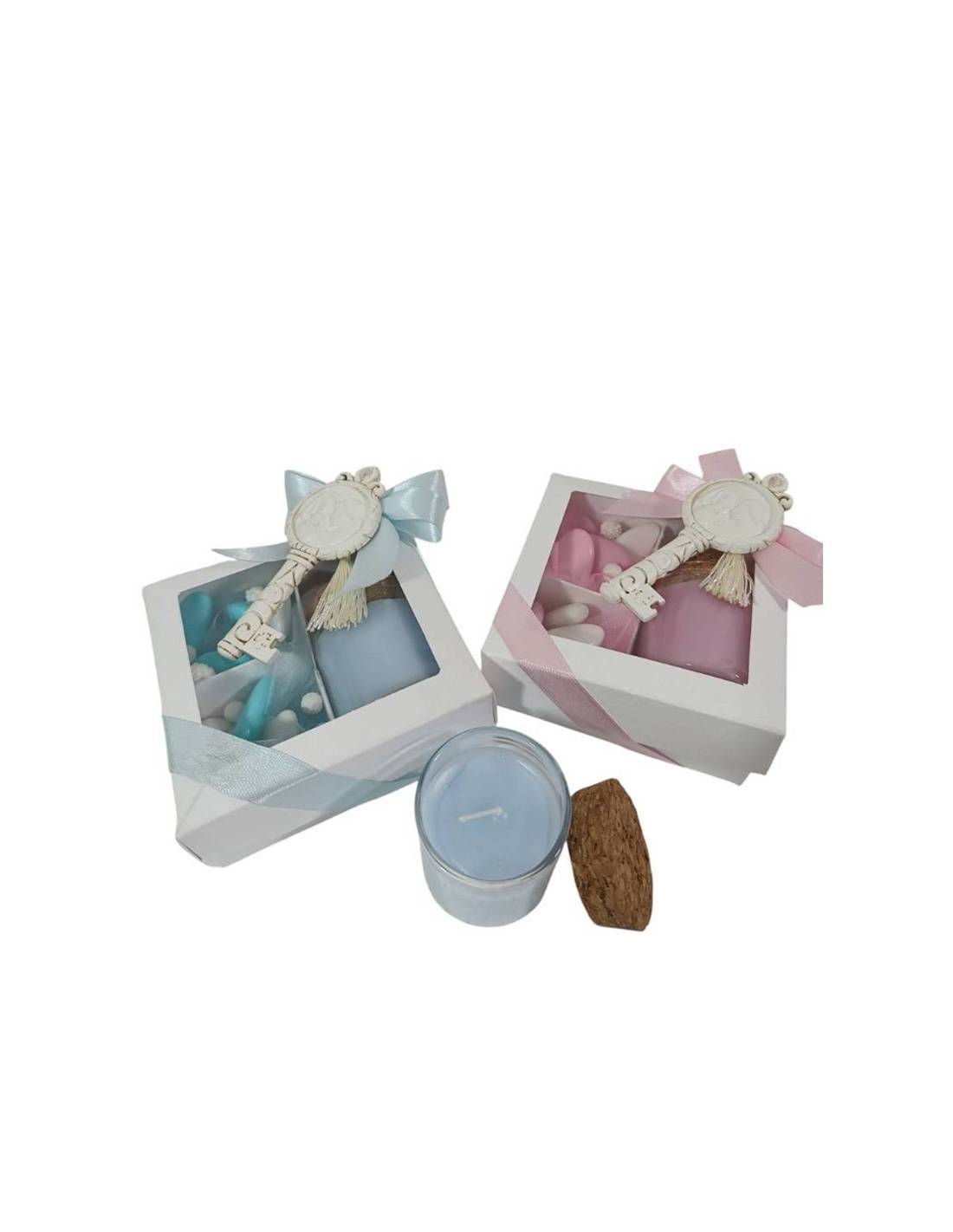 Candele bomboniere Battesimo bambino/a chiave Sacra Famiglia