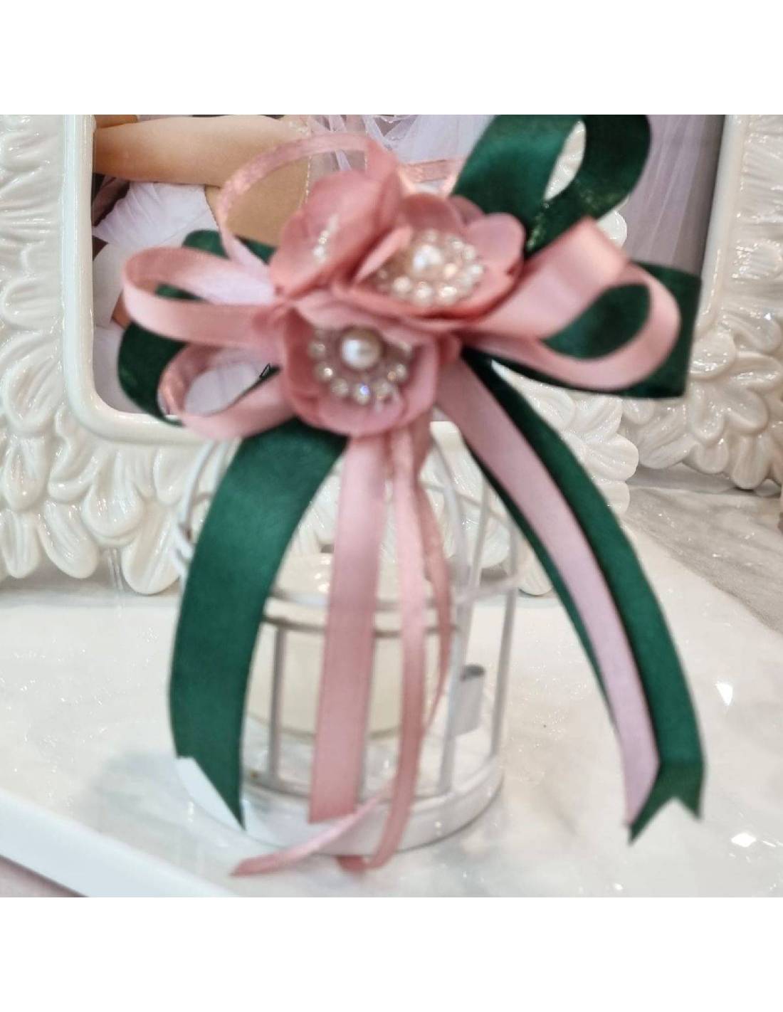 Meravigliosa bomboniera Battesimo con gabbietta in metallo, decorata come in foto