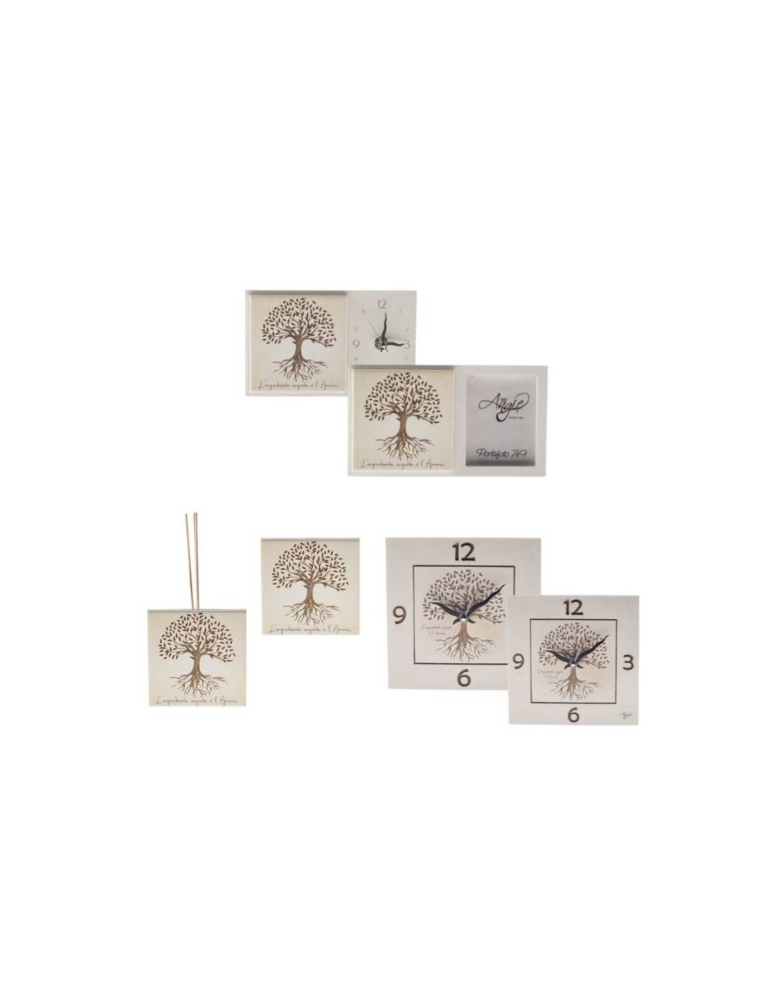 Angie bomboniere Linea Castagno con possibilità di scelta tra orologi, portafoto, quadretto, profumatore ambiente.