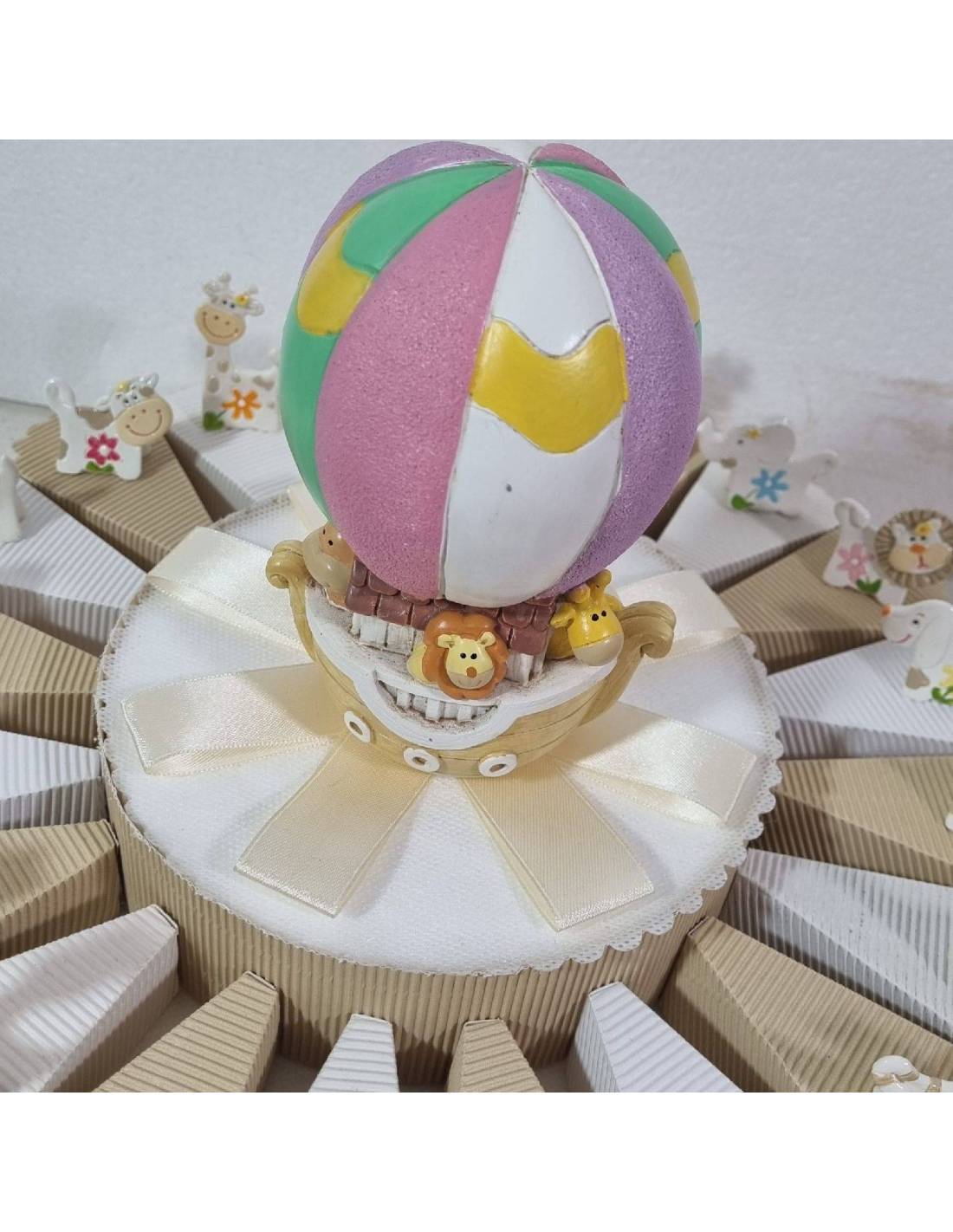 Torta bomboniere Battesimo animaletti con mongolfiera centrale