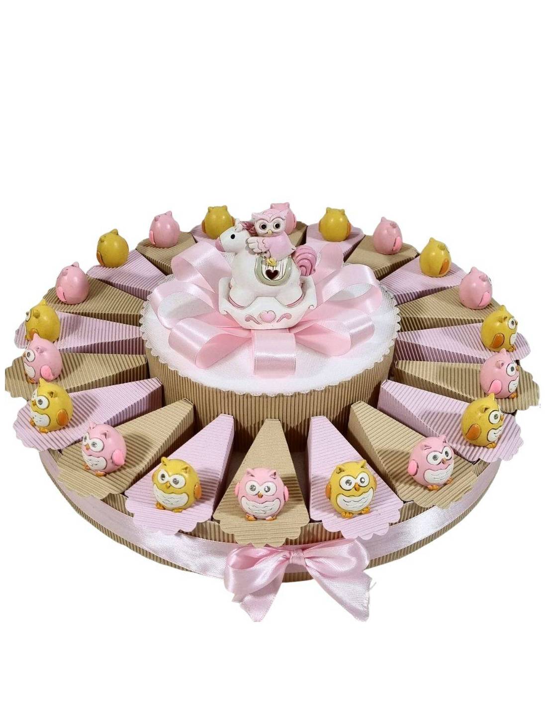Torta bomboniera con gufetti 2 colori con occhi strass