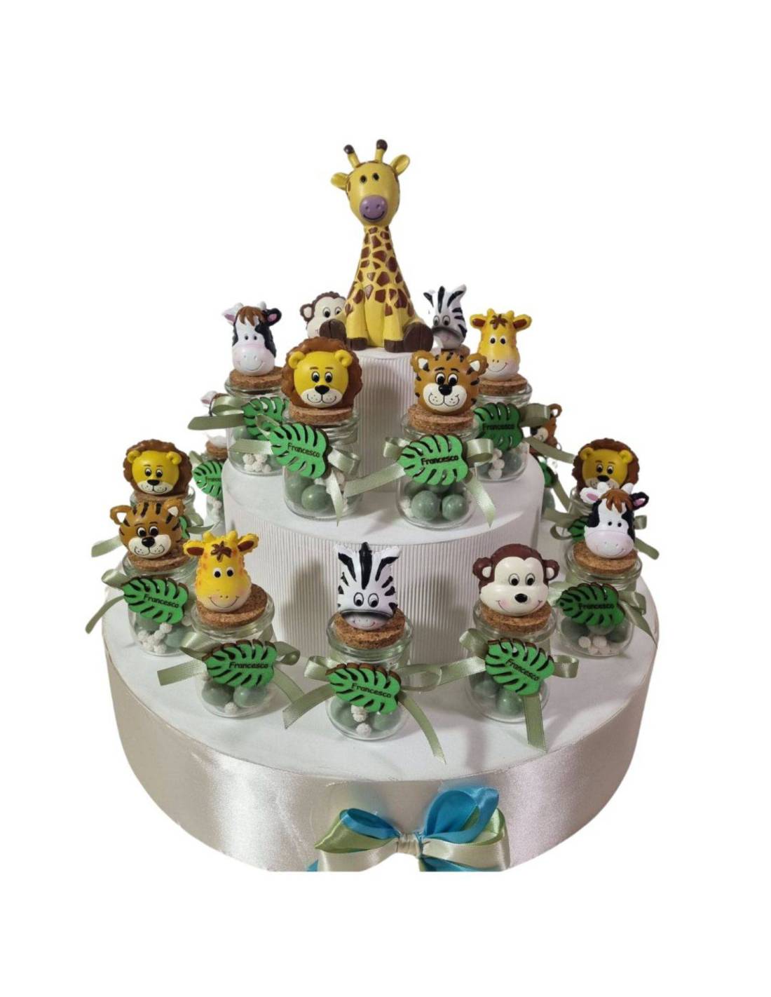 Torta bomboniera Battesimo savana vasetti portaconfetti