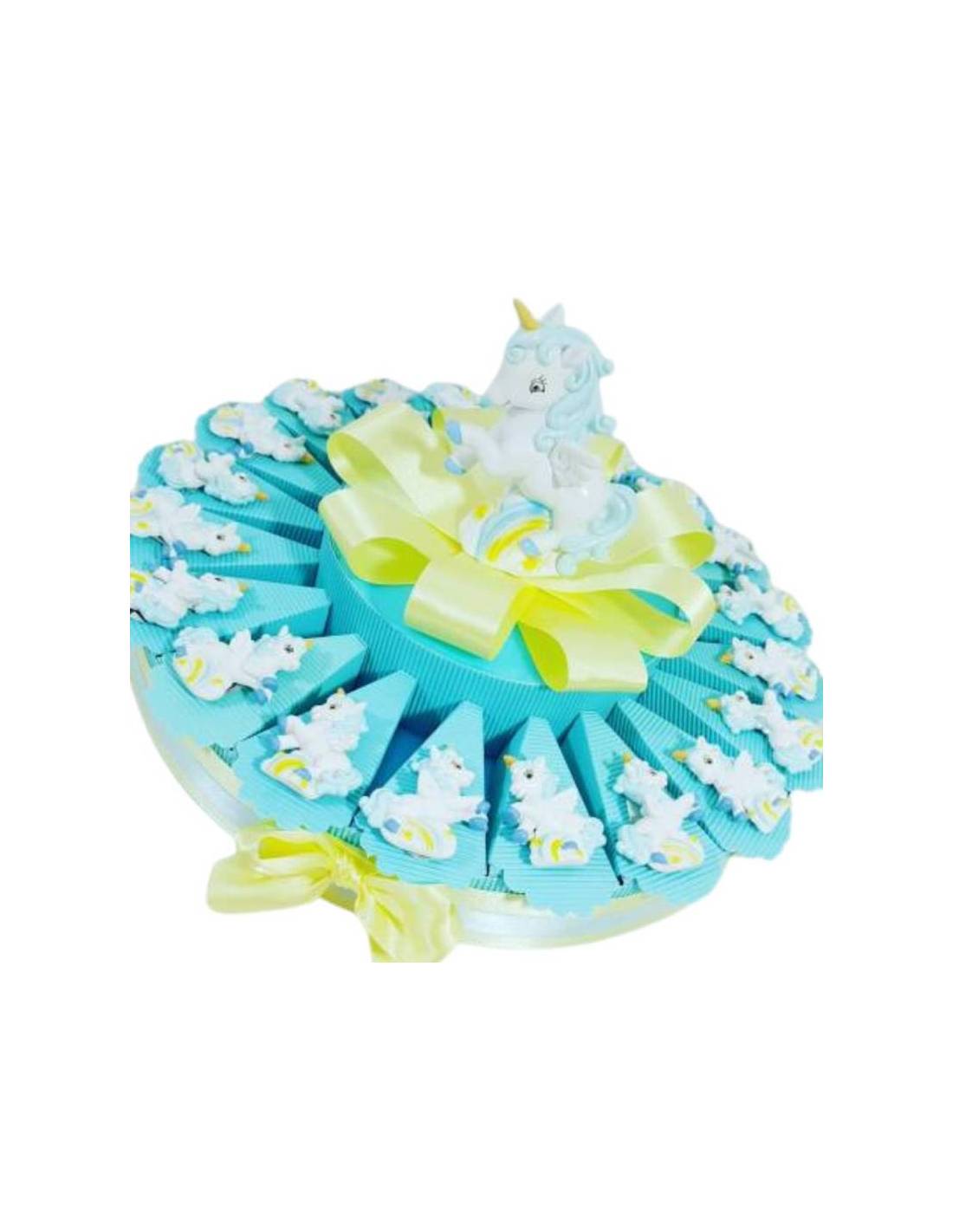 Bomboniere a forma di torta per maschietto, con magnete unicorno. Bomboniere economiche unicorno curati nei minimi particolari da disporre sulla torta portaconfetti come in foto. La torta è di varie misure e piani a seconda della scelta. Dai un'occhiata alle nostre offerte di bomboniere a forma di torta bomboniera