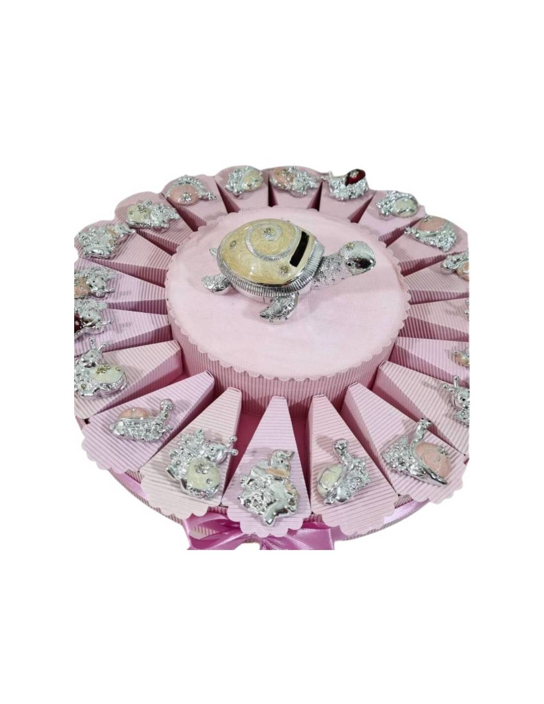 Torta bomboniere Battesimo Nascita bimba calamite animaletti colorati