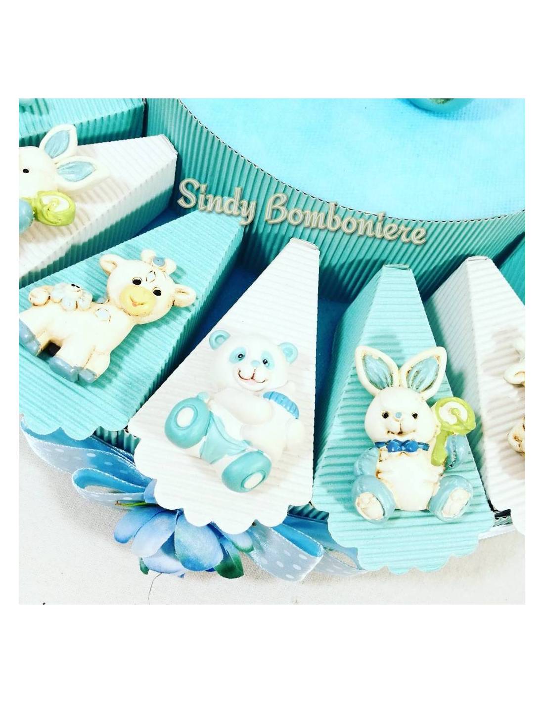 Idea bomboniera 1° compleanno battesimo n ascita torta bimbo animaletti magnete assortiti azzurro