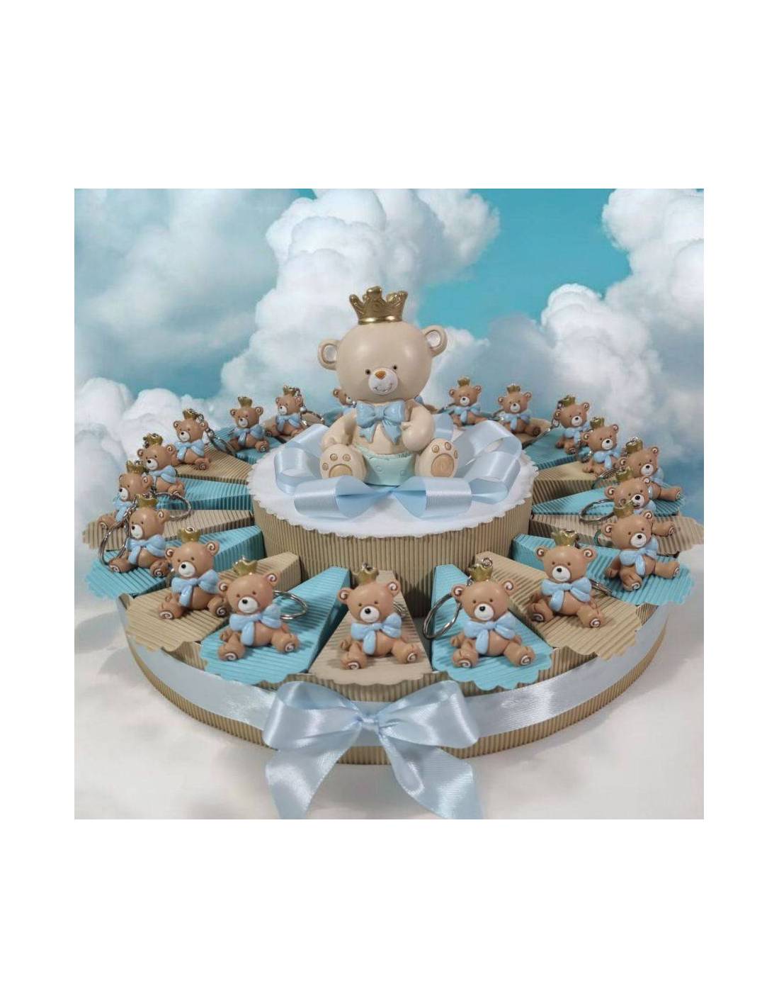 Torta bomboniere Battesimo orsetto principe corona dorata portachiavi
