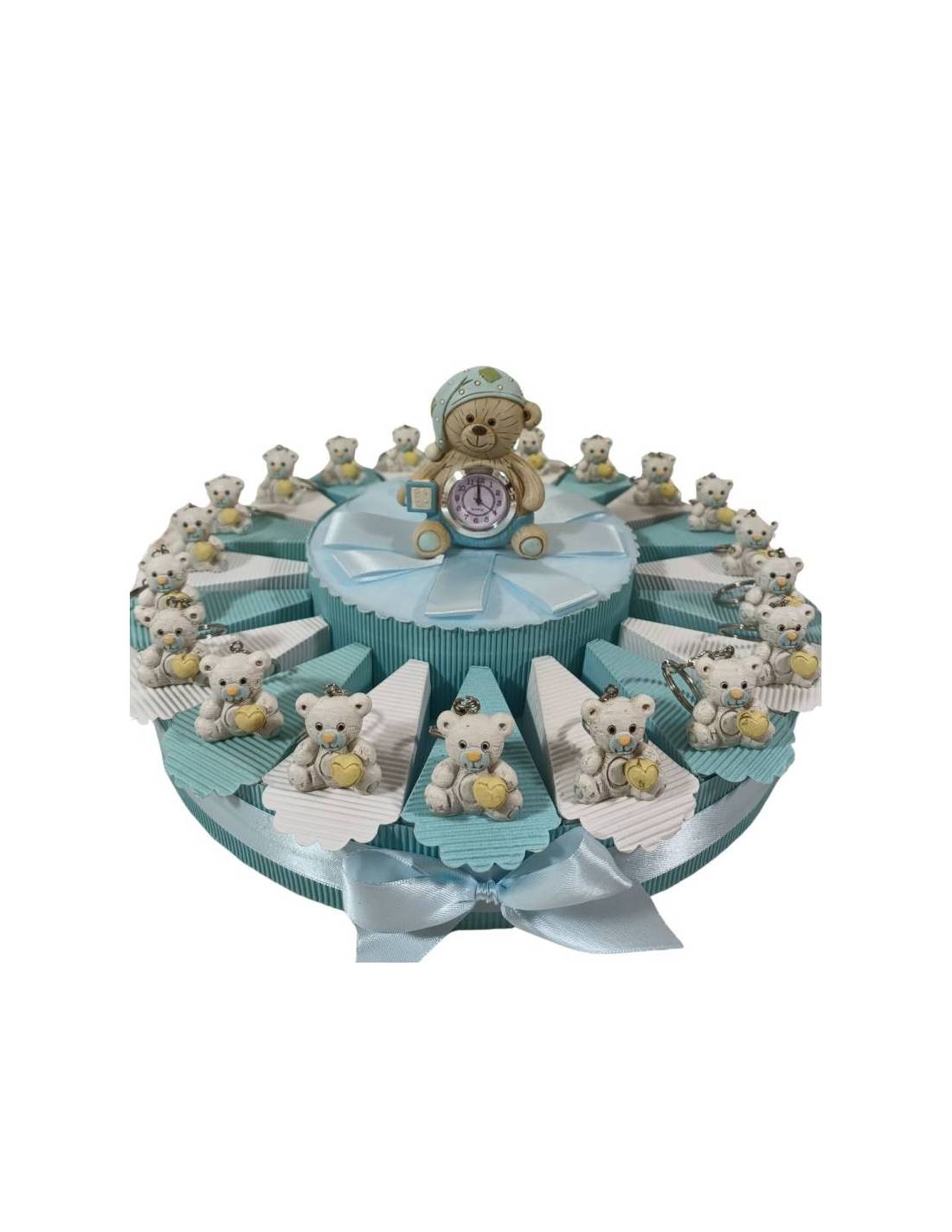 Torta bomboniere Battesimo 20 fette bimbo portachiavi orsetti cuore