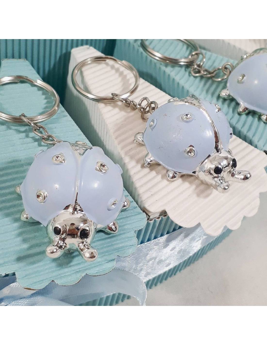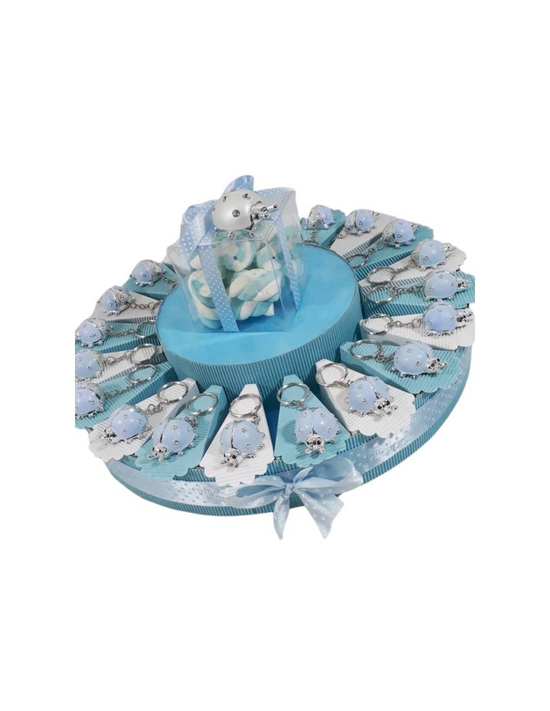Torta bomboniere battesimo bimbo Coccinella portachiavi celeste