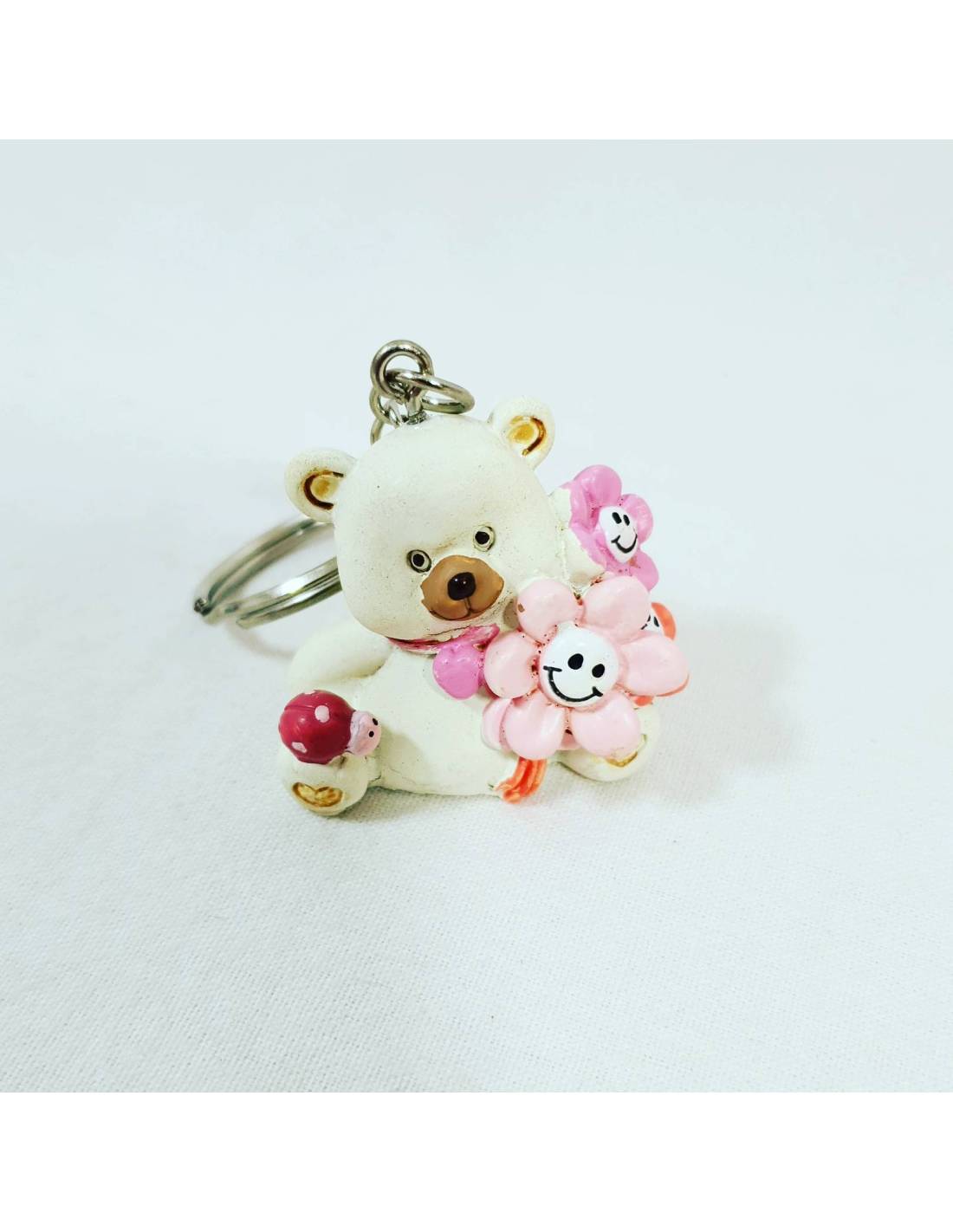 ORSETTI PORTACHIAVI in resina con fiorellino smile e coccinella rosa (dimensione totale 8 cm) + centrale orsetto albero (altezza 13 cm)