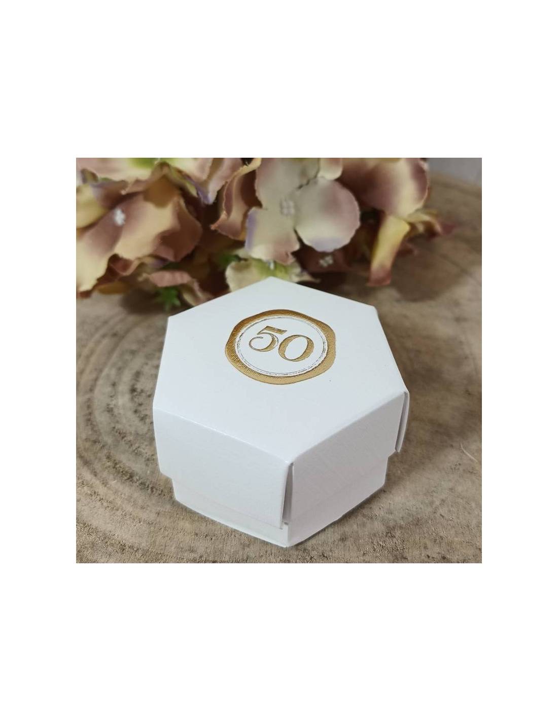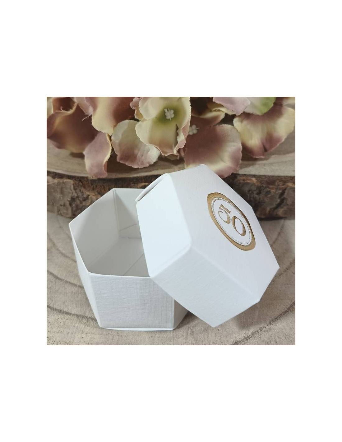 Bomboniere per Matrimonio nozze d'oro eleganti scatoline portaconfetti forma esagonale in cartoncino bianco con 50 dorato