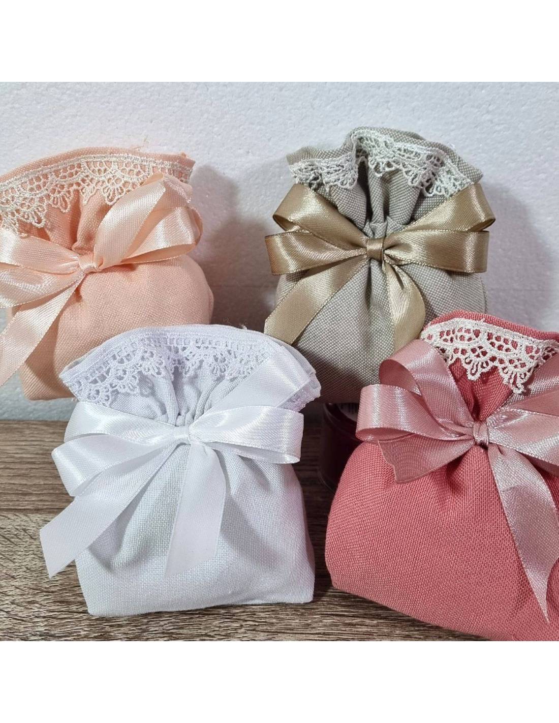 Sacchetti bomboniere juta morbido con merletto made in italy