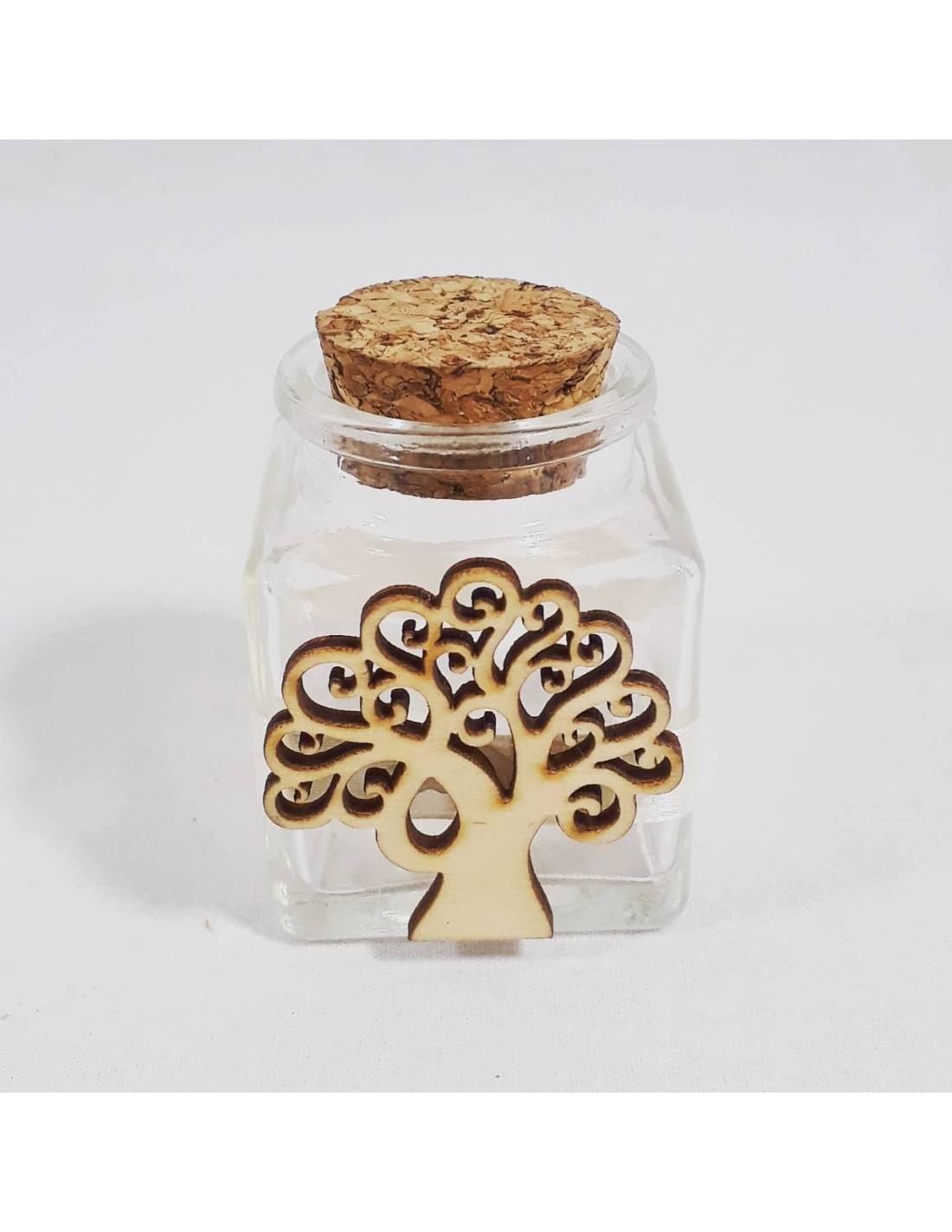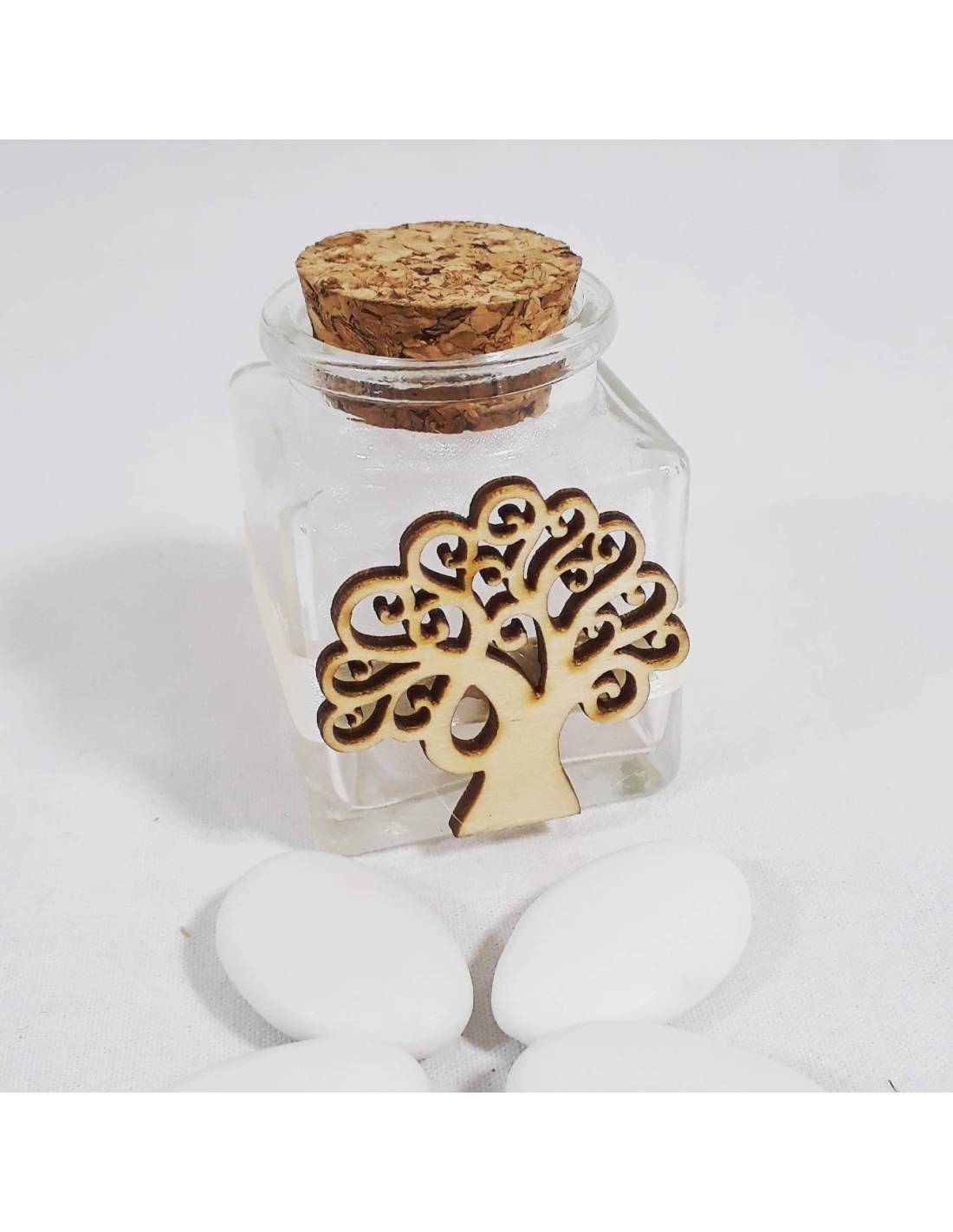 Vasetto per confetti in vetro con tappo in sughero con albero della vita in legno MATRIMONIO ANNIVERSARIO
