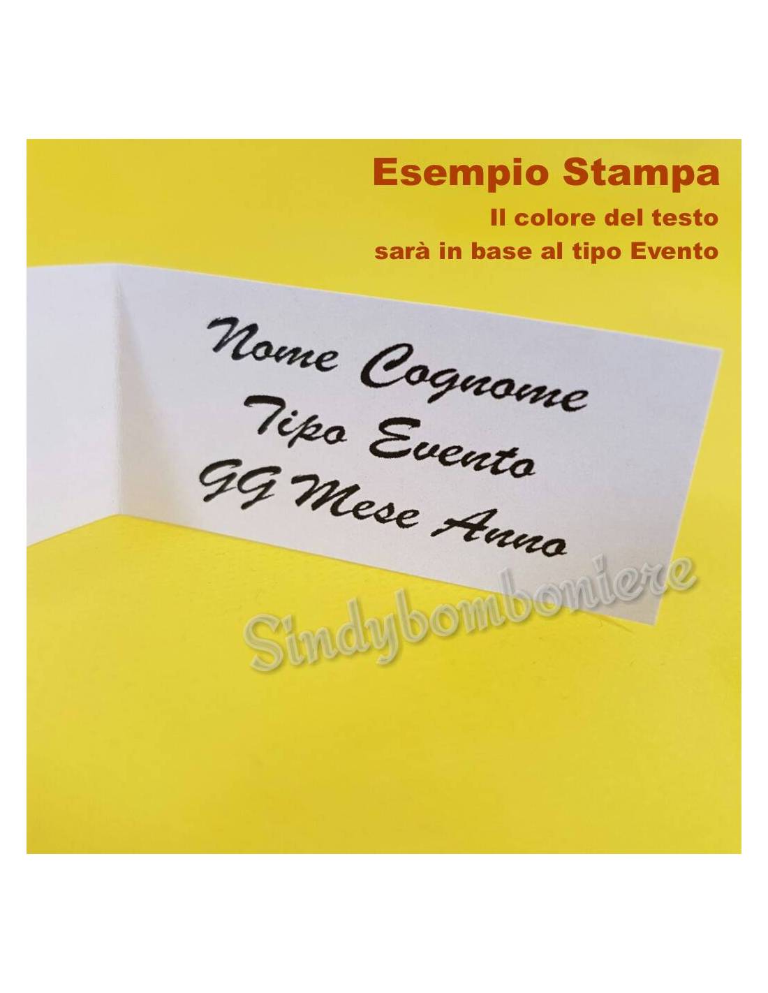 Il prezzo si riferisce alla confezione da 10 pezzi con stampa (0,10€ a Bigliettino). Puoi comunicarci i dati bigliettino (Nome e Cognome festeggiato, Tipo evento, Data evento o eventuale frase breve nella fase 3 dell'ordine nel check-out (SPAZIO DATI BIGLIETTINO). Il carattere della scrittura usato è Bush script Mt (Foto esempio in Galleria)