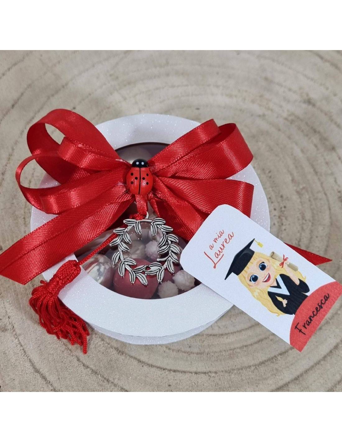 Bomboniere laurea scatola degustazione con corona di alloro argentato