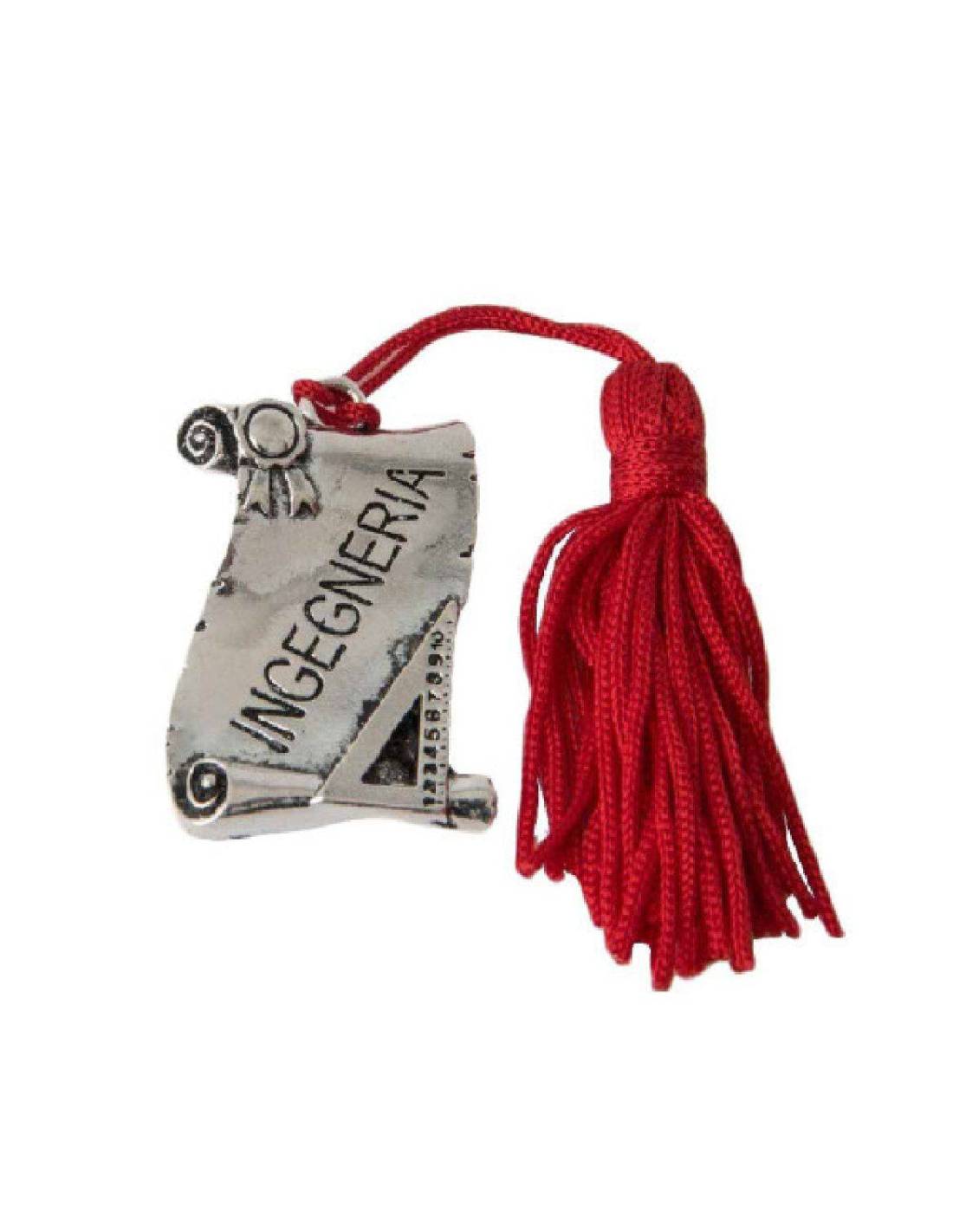 Gufetti argentati con piume rosse e tocco nero su scritta "LAUREA".
