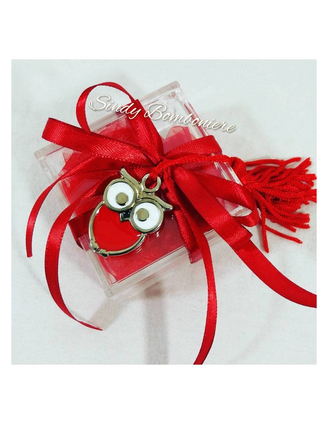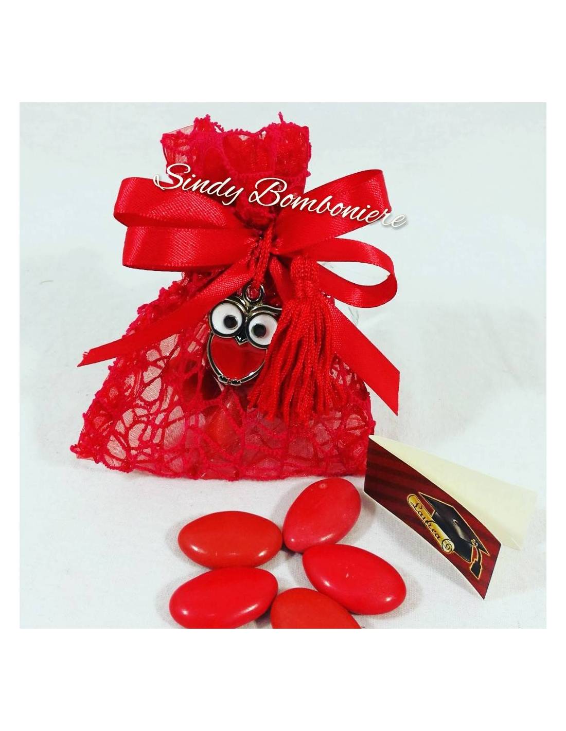 Bomboniera laurea ciondolo gufetto rosso simpatico portachiavi con nappina rossa