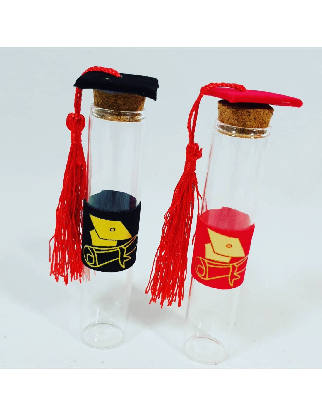 Bomboniere Laurea originali ed economiche inserendo semplicemente i confetti rossi e le bomboniere sono pronte. Il prezzo si riferisce ad una sola provetta.