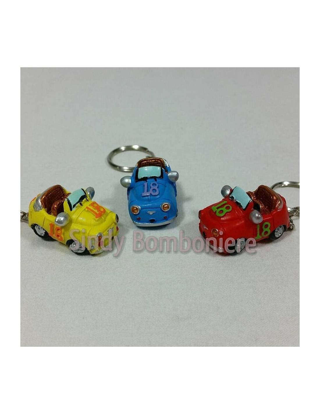 Bomboniera Portachiavi 500 cabrio in 3 varianti in resina dipinti a mano fai da te ideali per nascite, comleanni ecc..