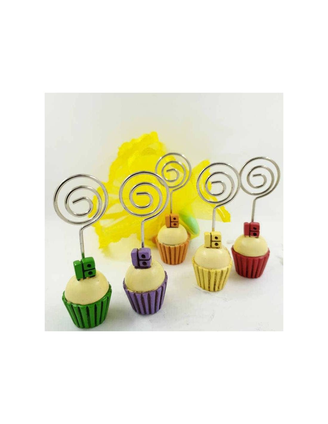 Graziosi portafoto clip a forma di cupcake per bomboniere x 18 ragazza. Ogni dolcetto memoclip ha il 18 con un asta a spirale in metallo argentato, utili bomboniere diciottesimo per inserire una piccola foto o un messaggio.