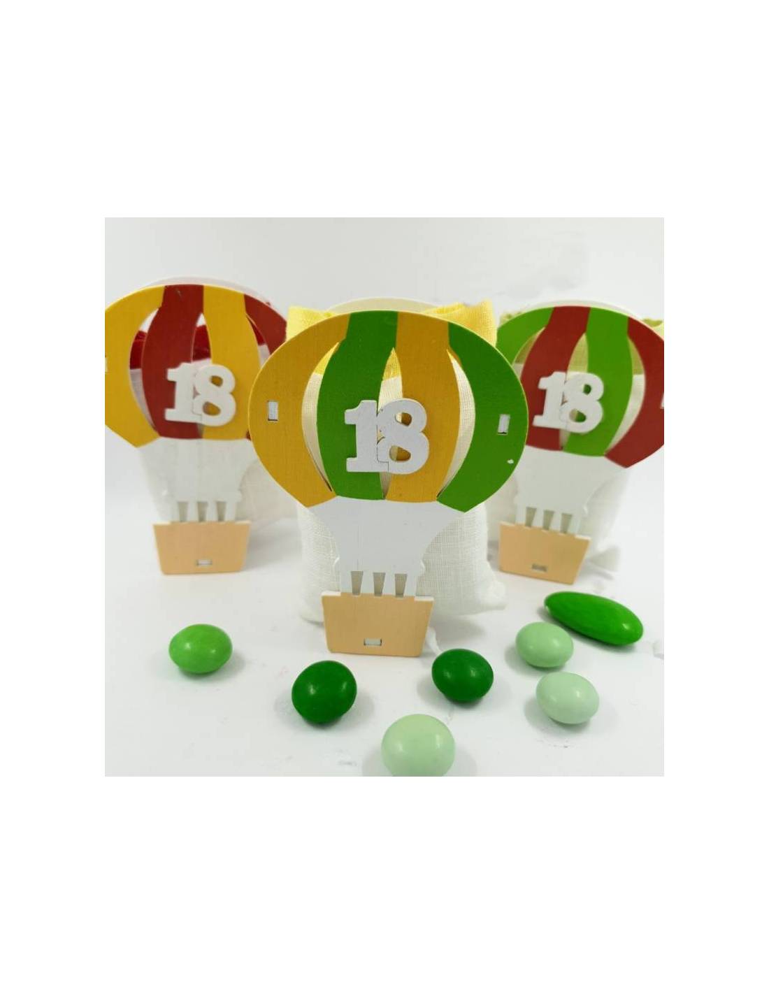Scatoline portaconfetti per 18 anni mongolfiera in legno