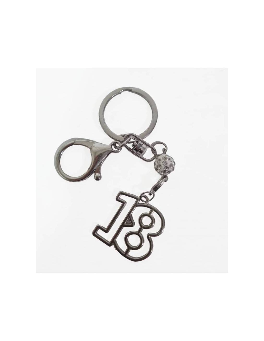 Idee bomboniere portachiavi diciottesimo compleanno in metallo inossidabile di colore argento.