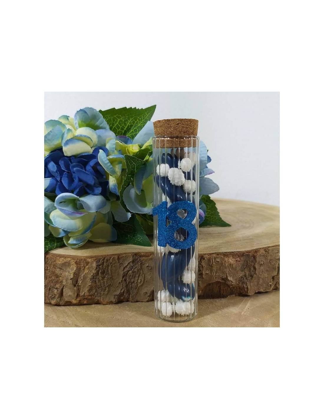 Provette bomboniere per 18esimo compleanno con su applicato numero 18.