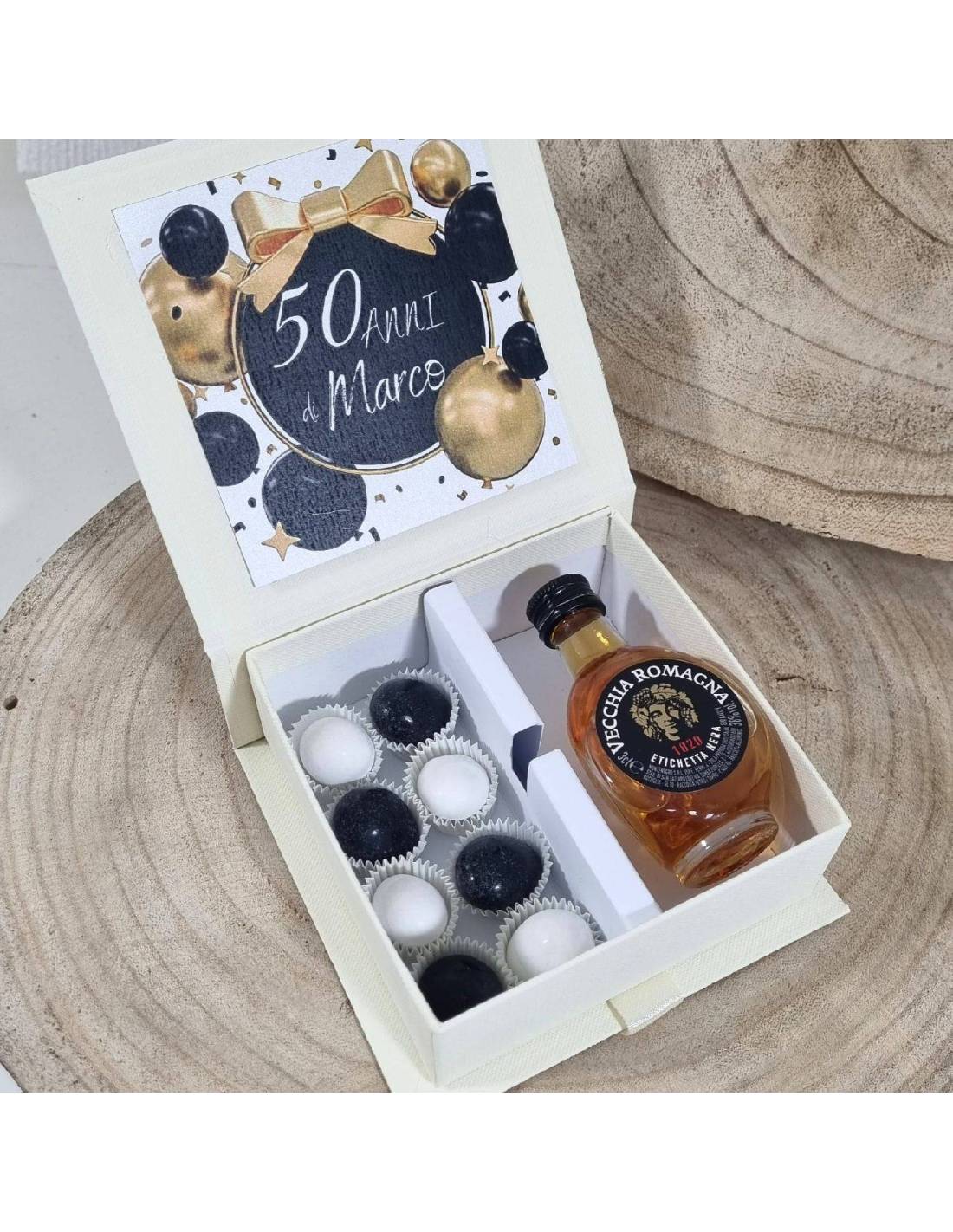 Vecchia romagna mini bottiglie liquori bomboniere con scatola personalizzata a seconda dell'evento contattandoci su whatsapp.