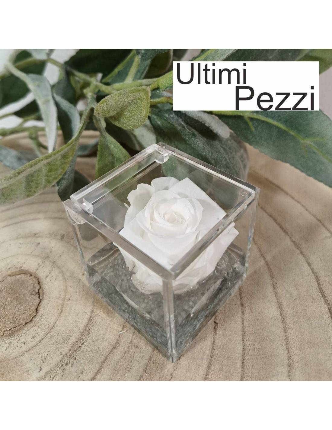 Bomboniere con scatola a vista con rosa stabilizzata nera incastonata in gel nel plexiglas