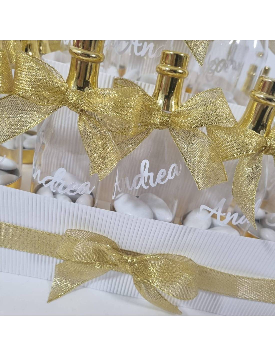 Bellissima torta bomboniere con sacchetti di organza e stoffa a rete verde confetti inclusi!