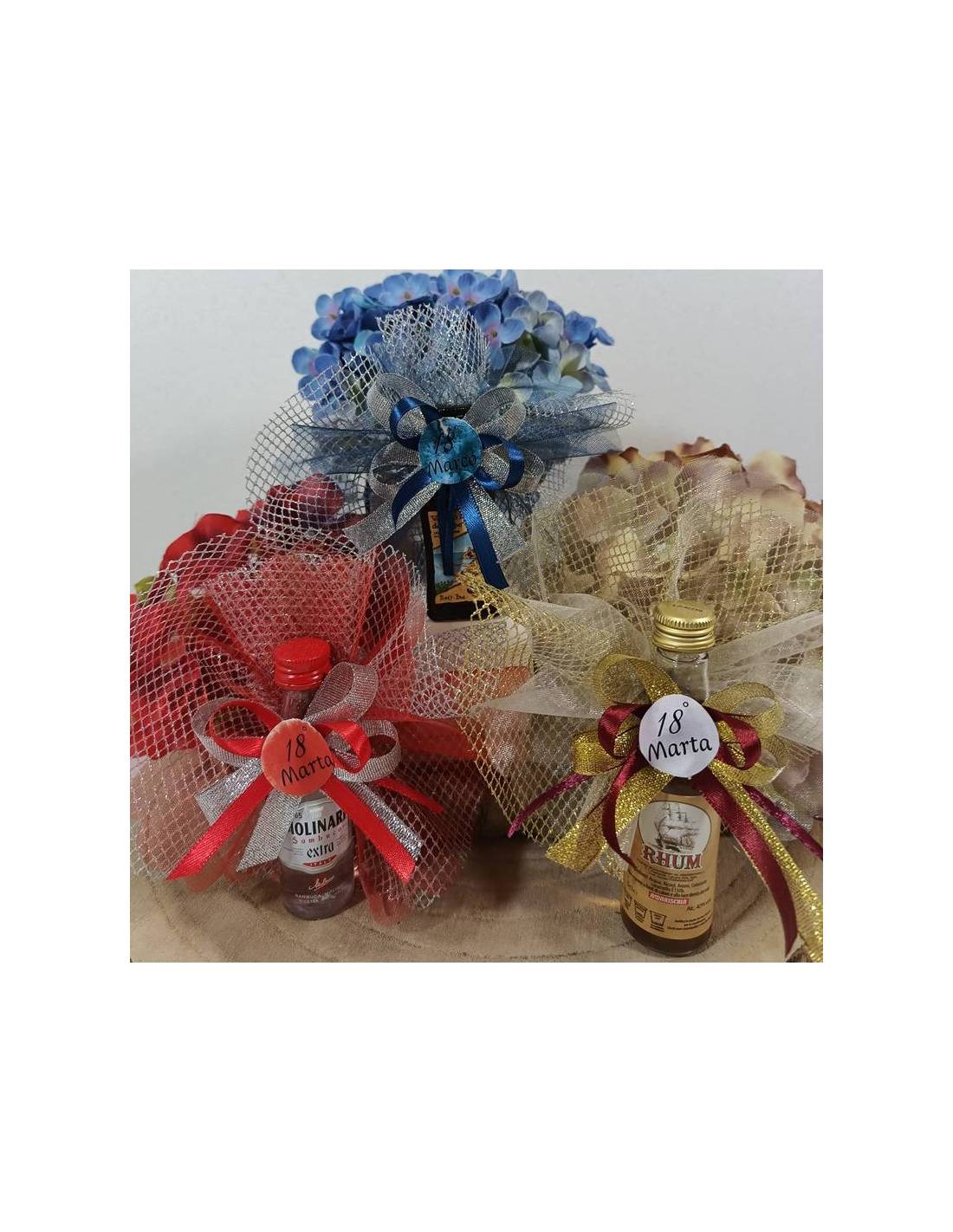 Non perderti queste bomboniere bottiglie di liquore dove puoi personalizzare colore nastro, confetti e tag, e le riceverai confezionate da noi pronte da regalare.