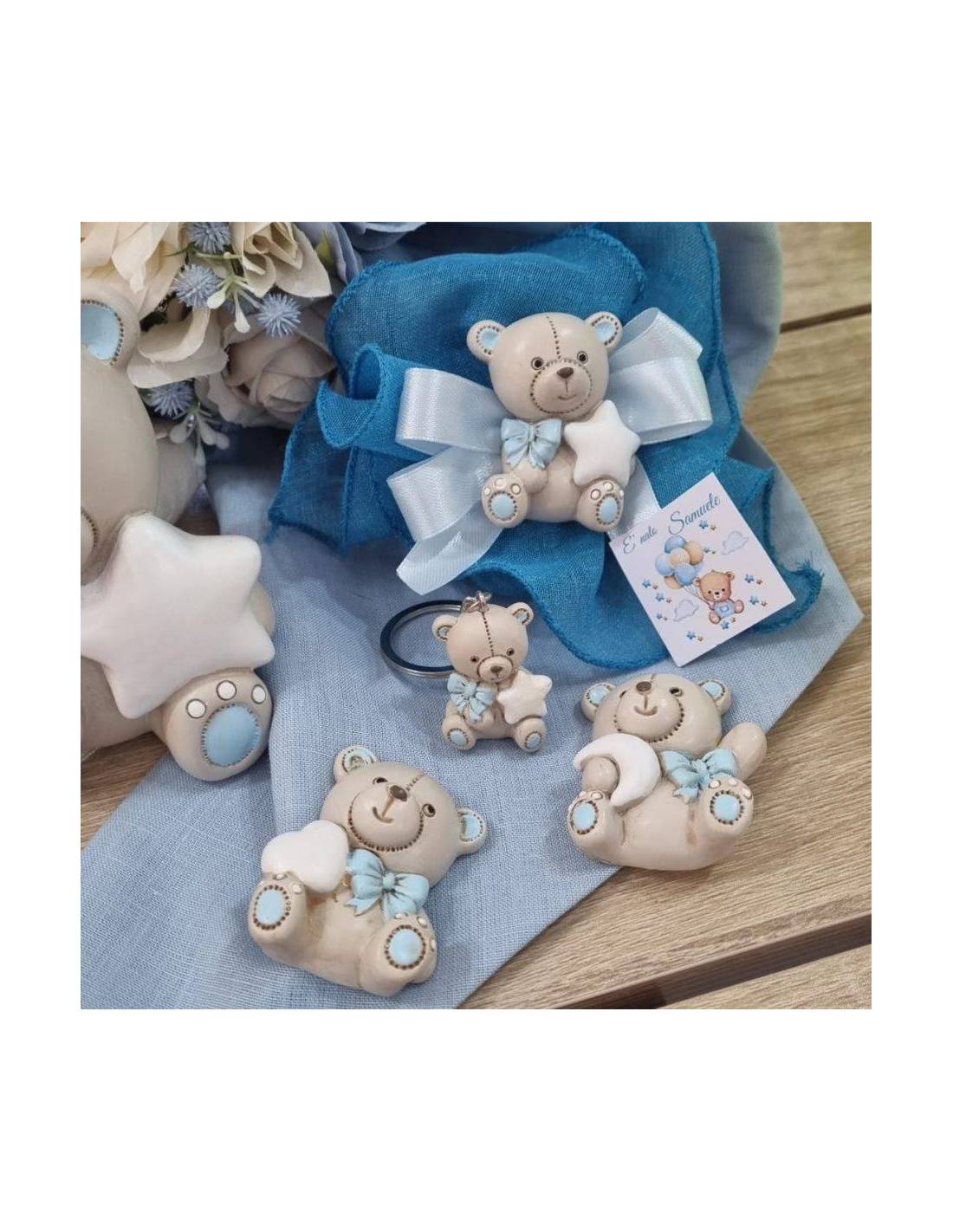 Orsetto bomboniera Battesimo bimbo portachiavi o magnete