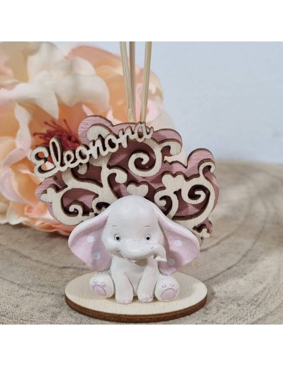 Bellissima bomboniera portafoto a forma rettangolare colore bianco con dettagli rosa con orsetto e mongolfiera.