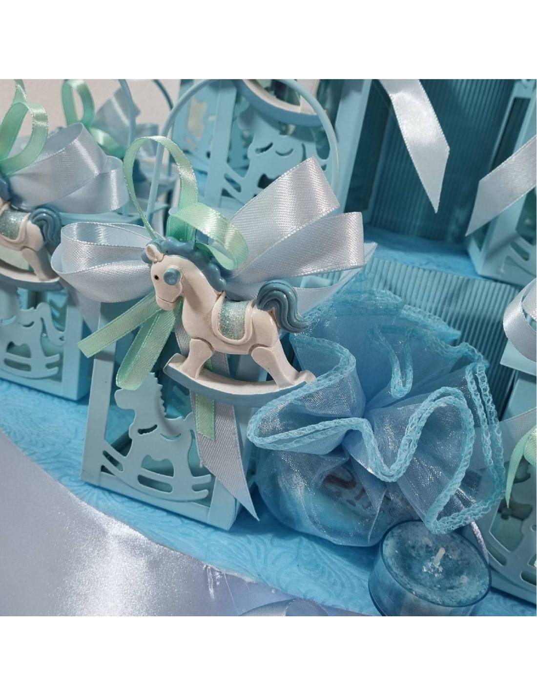 Bomboniere Battesimo bimbo lanterna cavalluccio candela profumata