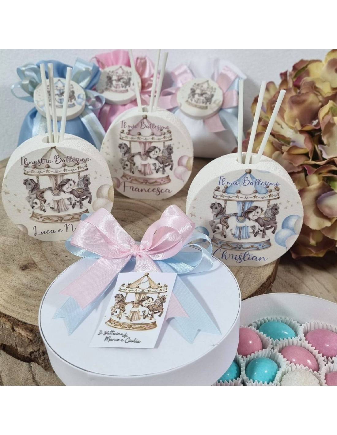 Bomboniere Battesimo personalizzate giostrina cavalli linea Sogni