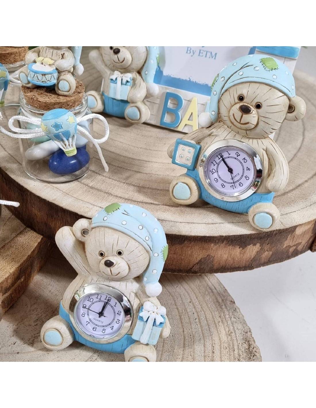 Bomboniere Battesimo orsetti orologio cuore personalizzati