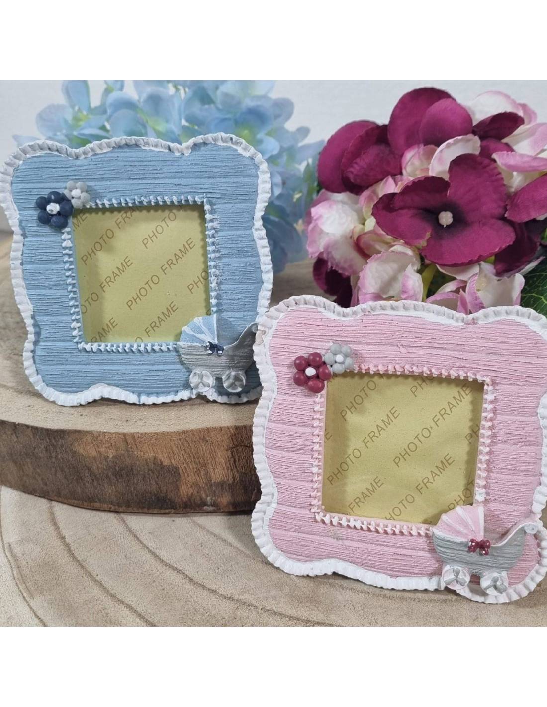 Bomboniera Battesimo 1 euro portafoto in resina con carrozzina ideali per questo giorno importante.