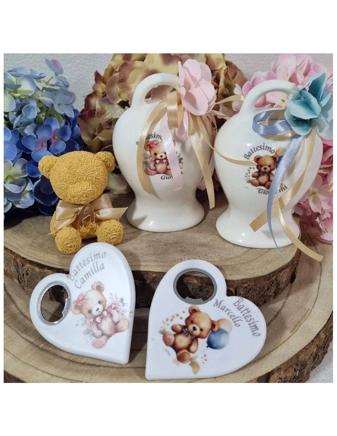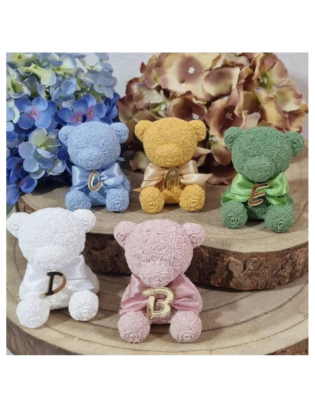 Bomboniere orsetti in povere di ceramica con iniziale del nome 6 cm circa