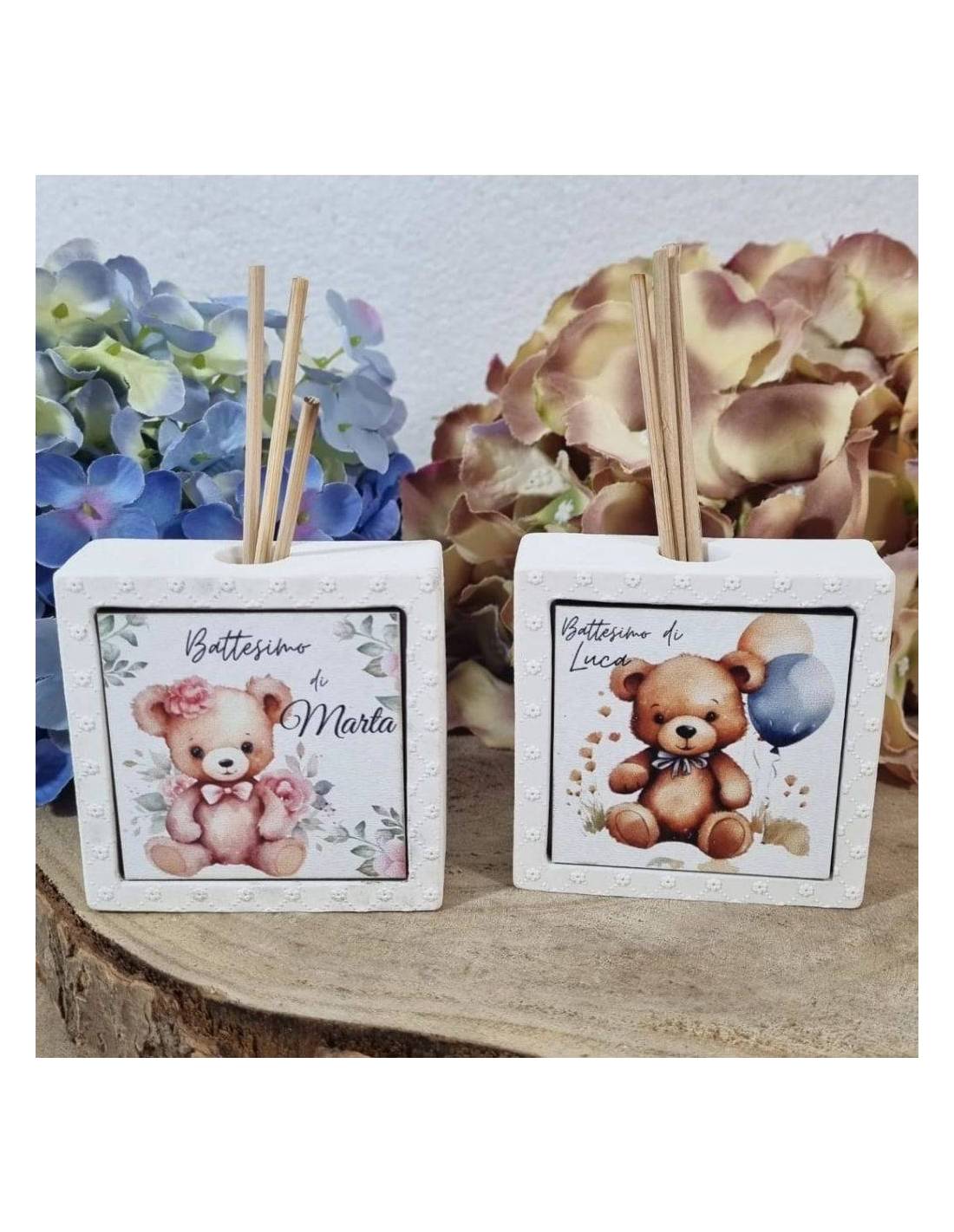 Bomboniere Battesimo originali profumatori completi di bastoncini dimensione 7*7 cm circa