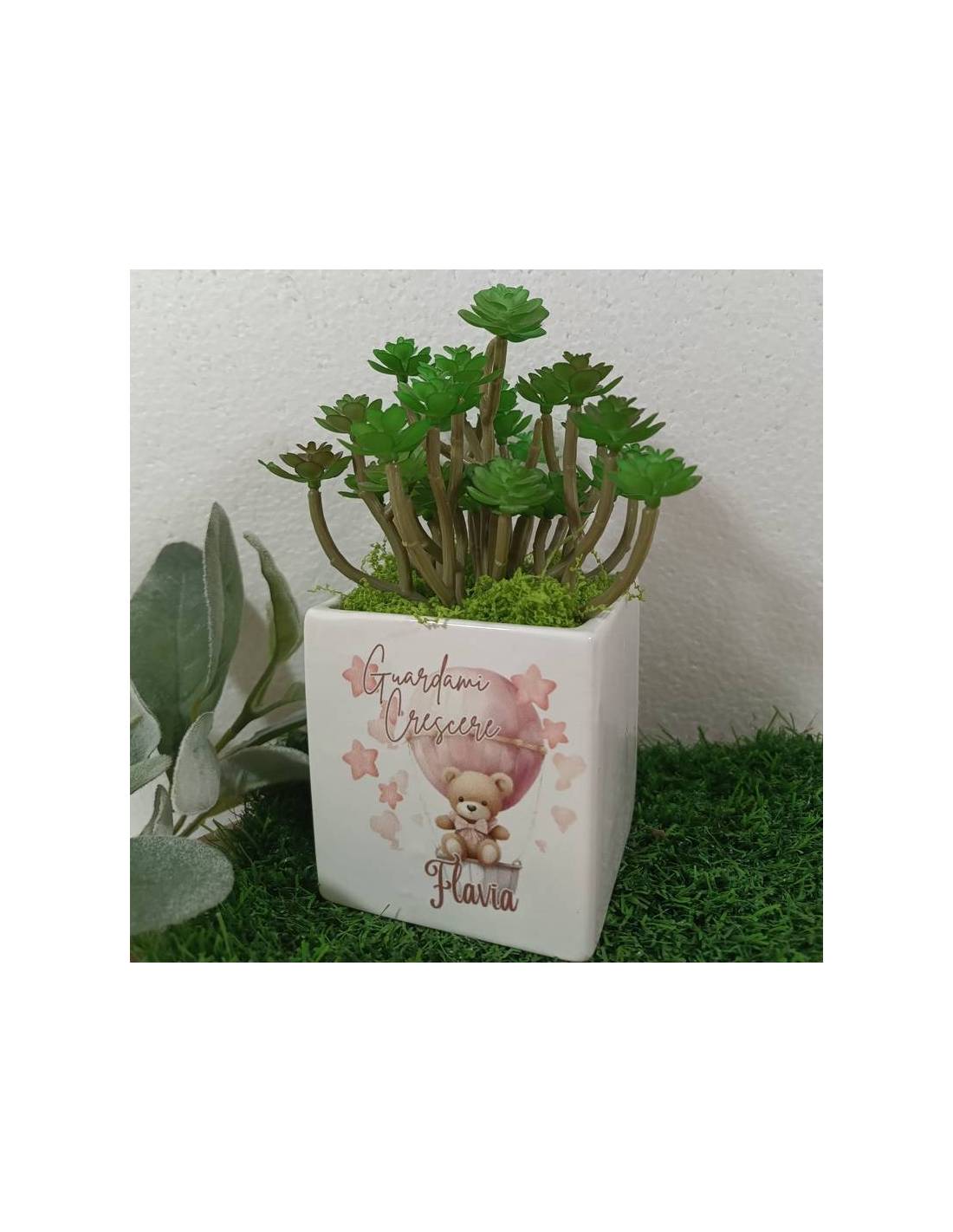 Bomboniere in ceramica vasetto portapiante fantasia mongolfiera orsetto | Sindy Bomboniere