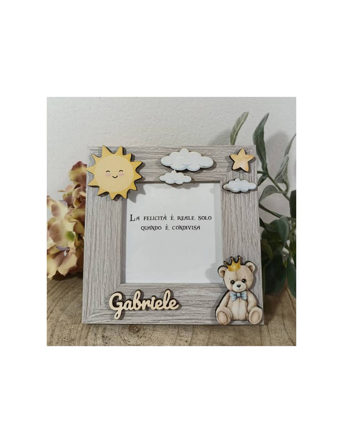 Bomboniere Battesimo cornice portafoto orsetto con corona nome personalizzato