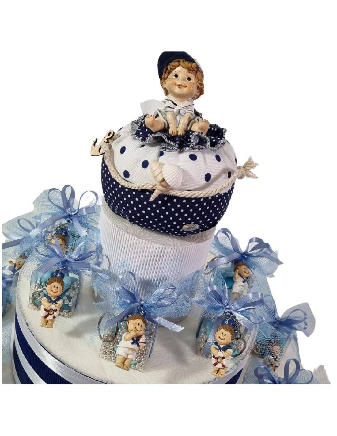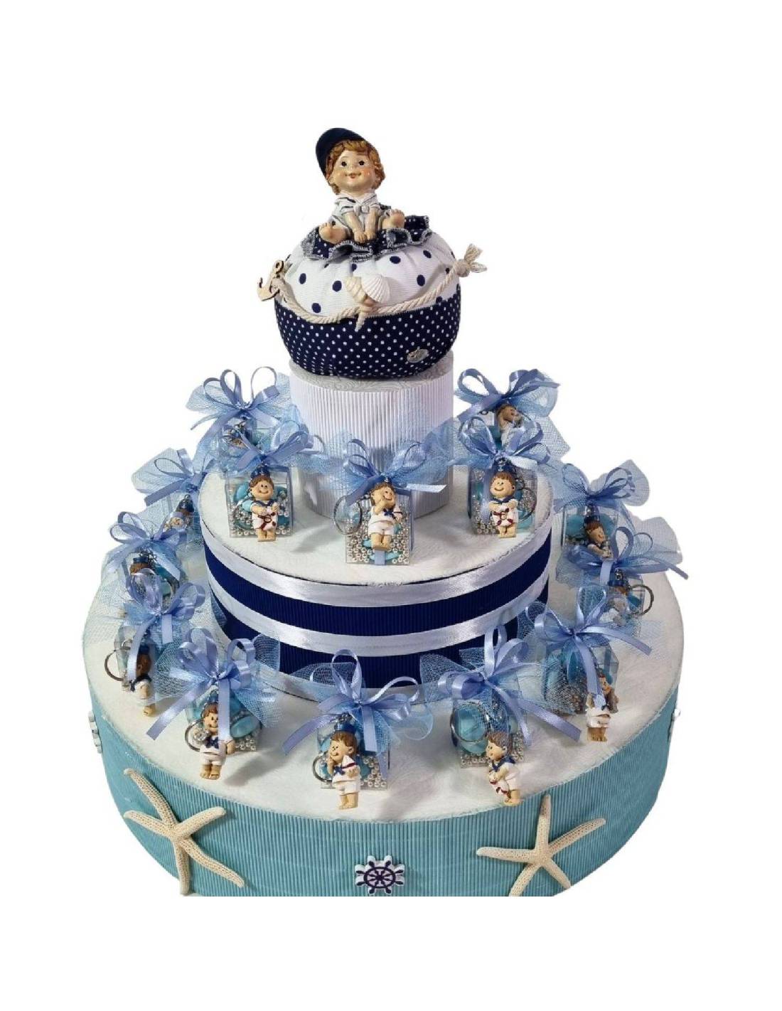 Torta bomboniere Battesimo bimbo marinaio stile mare portachiavi assortiti