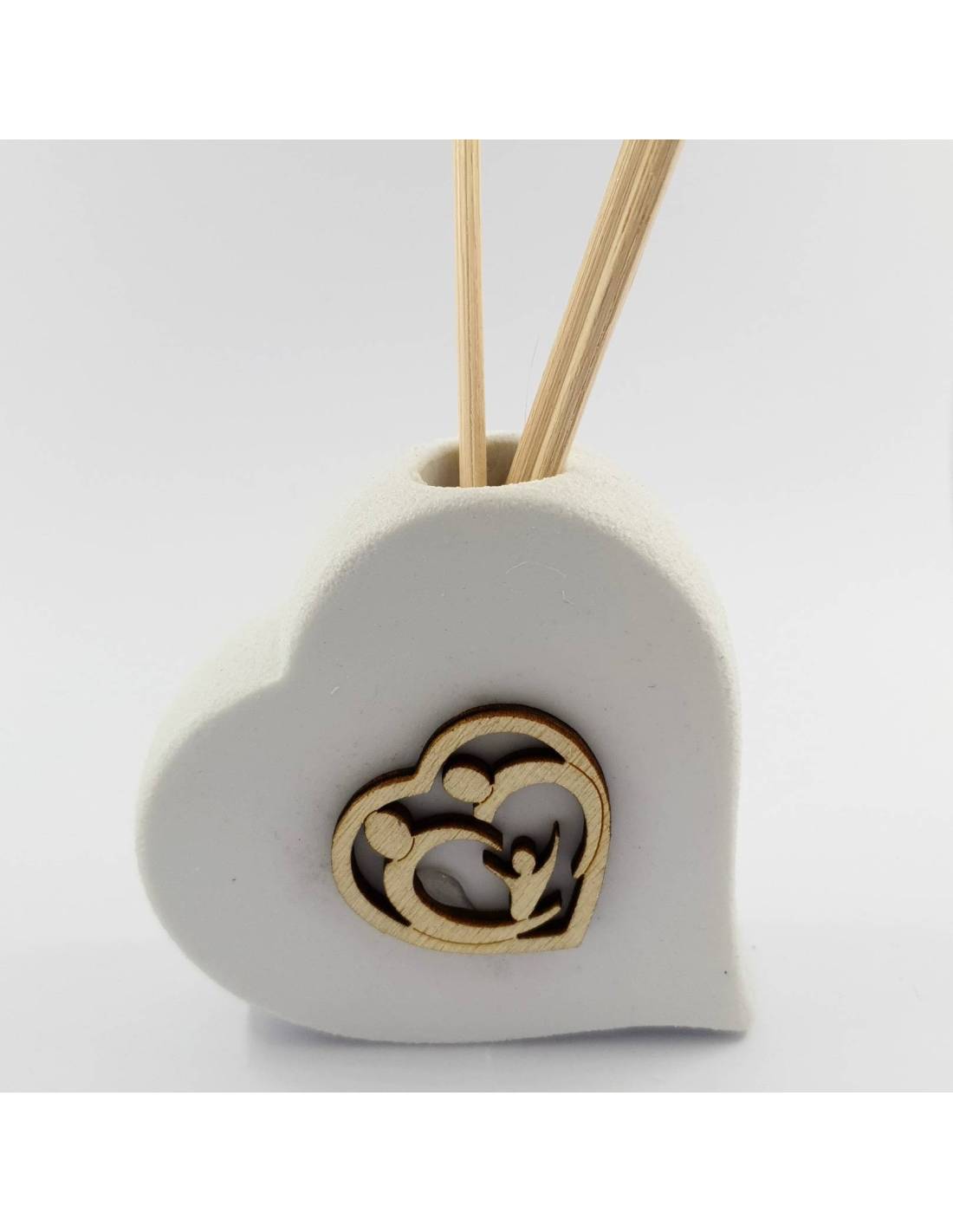 Bomboniere profumatori Battesimo bimba con stampa di stelle e cuori dalle tonalità rosa in abbinamento ai rami in legno.