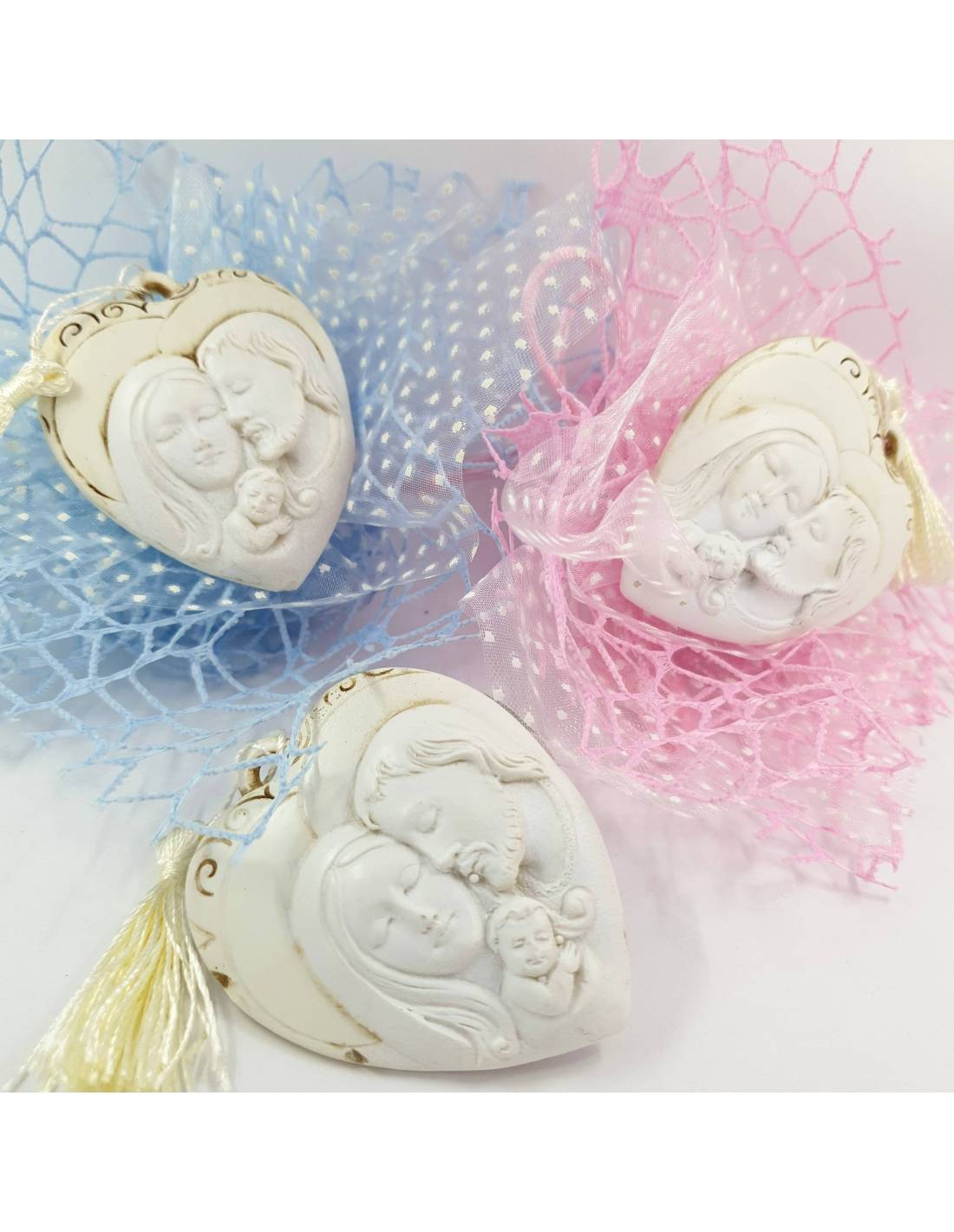 Cuore marmorizzato bomboniere sacra famiglia per battesimo