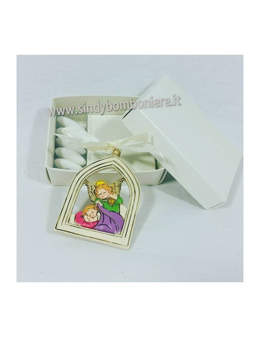 Bomboniere maschietto femminuccia fai da te pendente angelo custode e bimbo con scatola e plex senza confetti