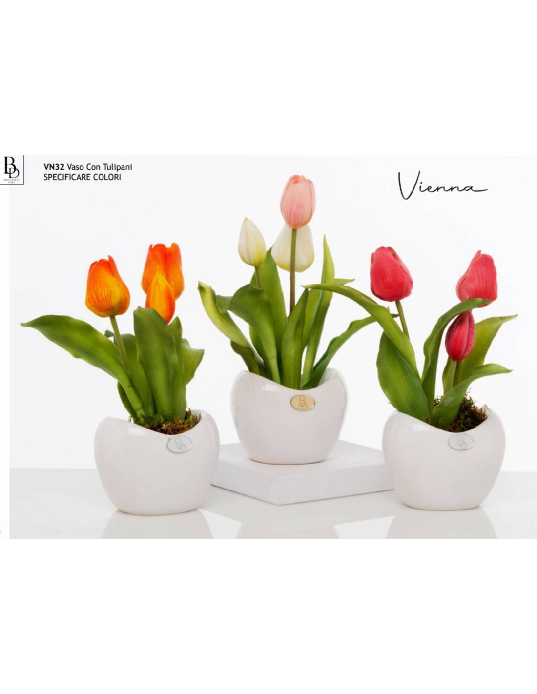 Cod.1 - VN32 tulipani arancioni - Vasi in ceramica bianchi con tulipani arancioni;